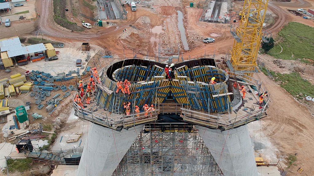 Work on the bridge, which forms part of N2 Wild Coast Road (N2WC), began in late 2019 where it is being constructed by the CME joint venture, a partnership between MECSA and Concor, both 100% black-owned Grade 9CE South African construction companies.