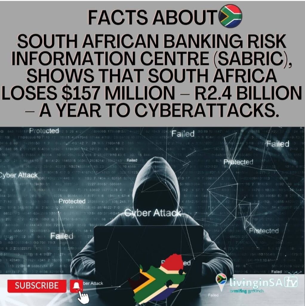 South African Banking Risk Information Centre (SABRIC), shows that South Africa loses R157 million – R2.4 billion a year to cyberattacks.