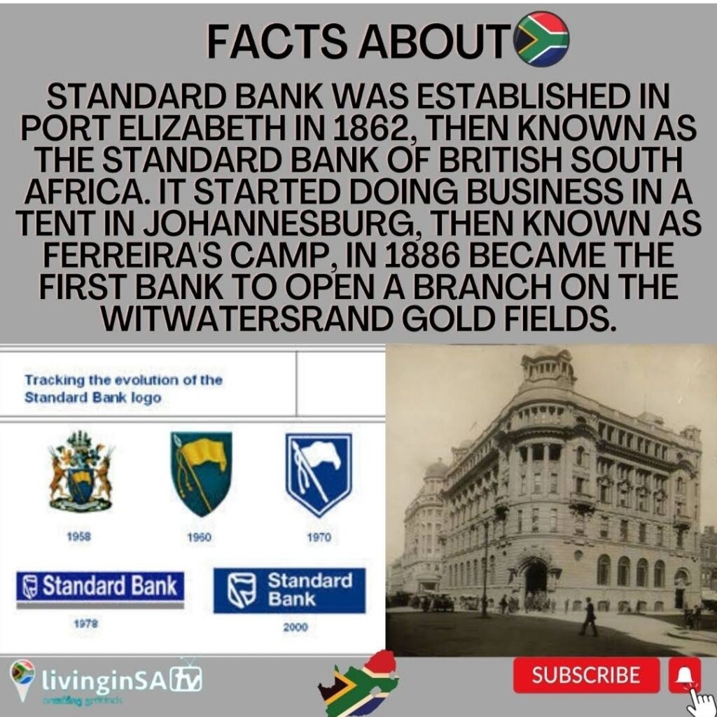 Standard Bank was established in Port Elizabeth in 1862, then known as The Standard Bank of British South Africa. It started doing business in a tent in Johannesburg, then known as Ferreira’s Camp. In 1886, it became the first bank to open a branch on the Witwatersrand gold fields.
