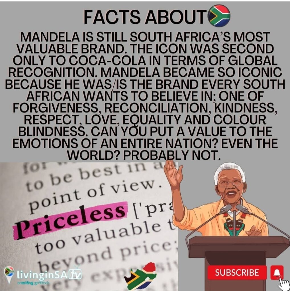 Mandela is still South Africa’s most valuable brand behind Coca Cola in terms of global recognition.