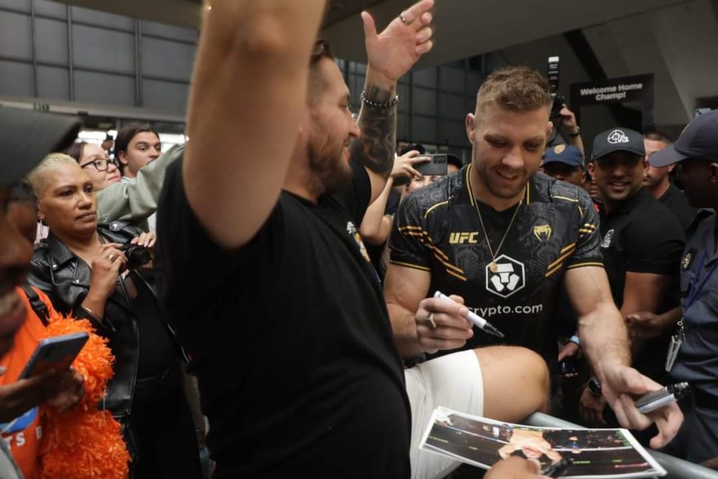 After defeating former UFC Middleweight Champion, Sean Strickland, at UFC 297, Stillknocks arrived at OR Tambo to a warm reception from South Africans who couldn’t wait to see him with the belt.